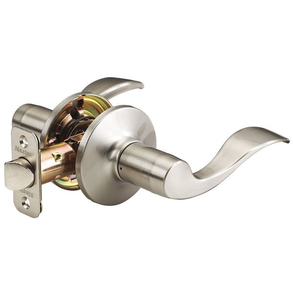 Lever Lockset, Light Duty, Residential, Wave Style, Satin Nickel Finish, Function Passage, Keyway Type KW1, Grade 3, Material Zinc, Steel, For Door Thickness 1-3/8 to 1-3/4 In., Backset 2-3/8 and 2-3/4 In., Crossbore Size 2-1/8 In., Number of Keys 2, 1-3/4 x 2-1/4 In. Strike, Required Door Thickness 1-3/8 to 1-3/4 In., Standards ANSI Grade 3