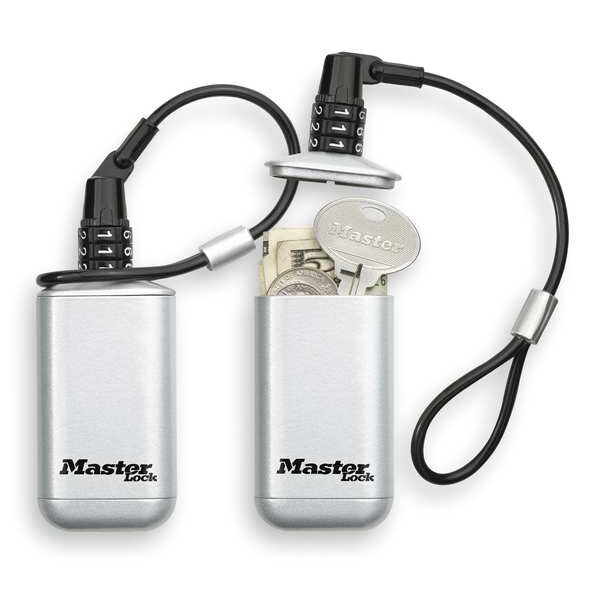 Lock Box, Lanyard Loop Mounting Type, Combination Locking Type, Key Capacity 2, Weather Resistant Yes, Height 3 in, Width 1 5/8 in, Depth 3/4 in, Metal, Silver/Black