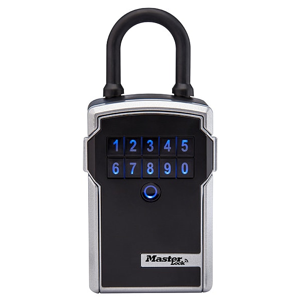 Lock Box, Padlock Mounting Type, Electronic Locking Type, Key Capacity 5, Height 6 51/64 in, Width 3 1/4 in, Depth 2 5/16 in, Metal, Gray, Includes Battery, Bluetooth Portable Lock Box
