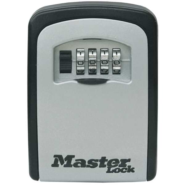 Lock Box, Surface Mounting Type, Combination Locking Type, Key Capacity 5, Weather Resistant Yes, Height 4 1/2 in, Width 3 7/16 in, Depth 1 3/8 in, Metal, Black, Includes Mounting Hardware