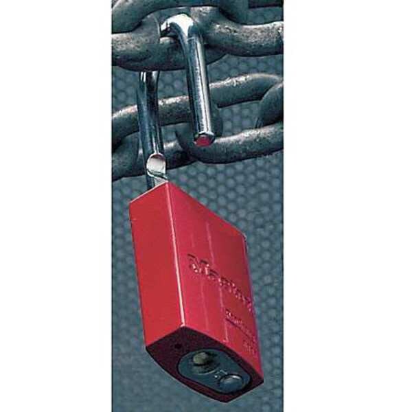 Lockout Padlock, Body Color Red, Body Height 1 15/16 in, Body Material Aluminum, Body Width 1 9/16 in, Key Type Keyed Alike, Shackle Diameter 1/4 in, Shackle Height 1 1/16 in, Shackle Material Hardened Steel, Shackle Type Open, Width Across Shackle 25/32 in, Body Shape Rectangular, Control Key Registration Required No