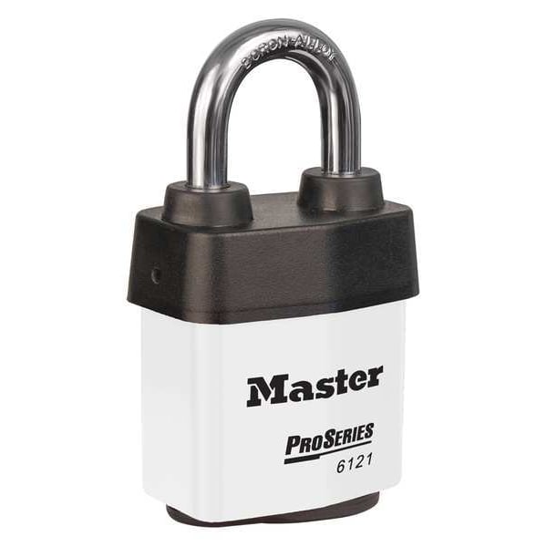 Lockout Padlock, Body Color White, Body Height 2 1/8 in, Body Material Steel, Body Thickness 1 in, Body Width 2 1/8 in, Header Not Applicable, Key Style Not Applicable, Key Type Keyed Different, Non-Removable Key Not Applicable, Resistance Properties Not Applicable, Shackle Diameter 5/16 in, Shackle Height 1 1/8 in, Shackle Material Boron Alloy, Shackle Type Open, Width Across Shackle 7/8 in, Body Material Coating Laminated, Features Weather Tough Cover, For Location Outdoor