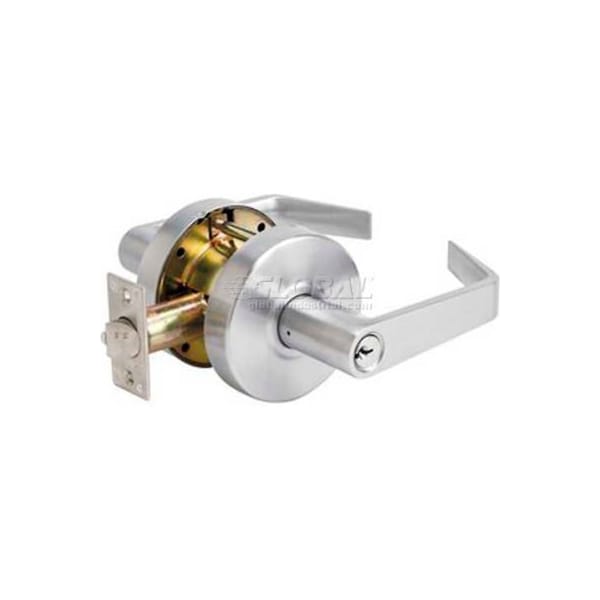 heavy duty, grade 2, sfic commercial lever, without cylinder, for storeroom doors. Brushed chrome finish. Bump stop cylinder protects against bump attacks. Clutch feature. Removable thru-bolts.