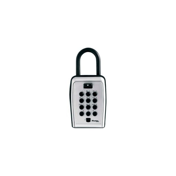 MASTER LOCKĀ® NO. 5422D PUSH BUTTON PORTABLE LOCK BOX - SET-YOUR-OWN COMBINATION THE MASTER LOCK NO. 5422D PORTABLE PUSH BUTTON LOCK BOX FEATURES A 3-1/8IN (79MM) WIDE METAL BODY FOR DURABILITY. THE SHACKLE DESIGN OFFERS OVER THE DOOR MOUNTING FOR CONVENIENCE. SET YOUR OWN 4 CHARACTER COMBINATION FOR KEYLESS CONVENIENCE AND INCREASED SECURITY. THE PROTECTIVE WEATHER COVER PREVENTS FREEZING AND JAMMING; AND MOLDED BUMPER AND VINYL COATED SHACKLE PREVENT SCRATCHING. THE PROVIDES PEACE OF MIND FROM A BRAND YOU CAN TRUST. FEATURES: