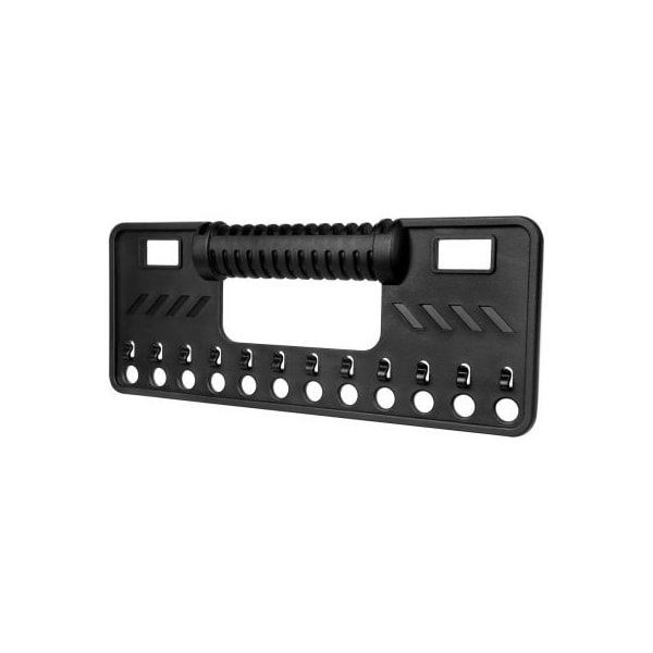 s3503 padlock caddy for permit control station and group lock box assemblies. Plastic with ergonomic carrying handle. Key ring tabs allow users to hang keys to make them visible in the lock box during lockout. Holds up to 12 locks for easy transportation. Plastic with ergonomic handle. Black.