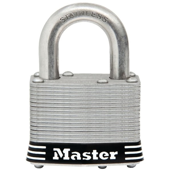 Padlock, Keyed Alike Key, 3/8 in Dia Shackle, 1 in H Shackle, Stainless Steel Shackle, Laminated