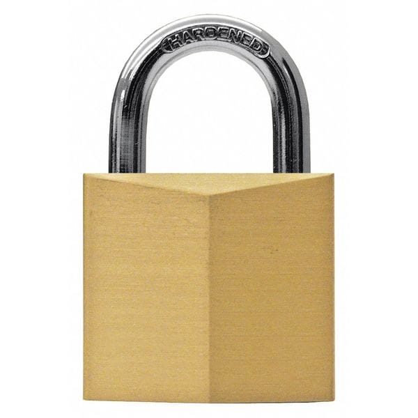 Padlock, Keyed Alike, Standard Shackle, Rectangular Brass Body, Steel Shackle, 9/16 in W