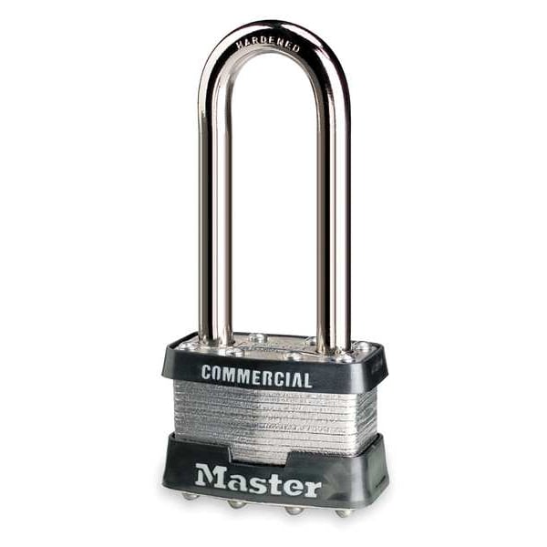 Padlock, Shackle Dia. 5/16 in, Shackle Height 2 1/2 in, Shackle Width 3/4 in, Shackle Material Steel, Body Height 2 13/32 in, Body Width 1 3/4 in, Body Thickness 7/8 in, Body Material Steel, Number of Bumpers 2, Number of Pins 5 Pin, Key Type Different, Control Key Registration Required No, For Use With Gates, Cribs, Vending Machines, Commercial, Automotive, Body Color Silver, Body Finish Laminated, Keyway Type Master K27, Weather Resistant No, High Security Yes, Interchangeable Core No