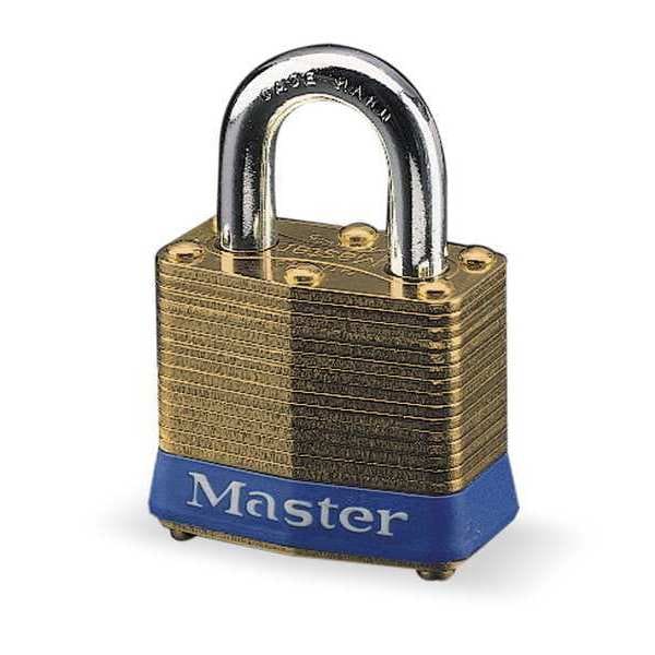 Padlock, Shackle Dia. 5/16 in, Shackle Height 15/16 in, Shackle Width 3/4 in, Shackle Material Steel, Body Height 1 3/4 in, Body Width 1 3/4 in, Body Thickness 7/8 in, Body Material Brass, Number of Bumpers 1, Number of Pins 4 Pin, Key Type Different, Control Key Registration Required No, Body Color Brass, Body Finish Laminated, Keyway Type Master K1, Weather Resistant Yes, High Security No, Interchangeable Core No, Padlock Body Shape Rectangular, Rekeyable No, Shackle Type Standard Shackle