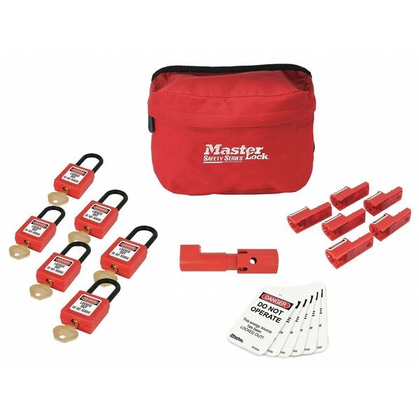 Portable Lockout Kit, Language English, Includes (1) Aircraft Power Receptacle Lockout, (6) Red Thermoplastic Locks 1TDC9, (6) Aircraft Circuit Breakout Lockout 22A868, (6) Do Not Operate Safety Tags 22A869