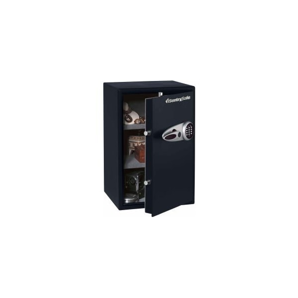 SENTRYSAFE LARGE CAPACITY SECURITY SAFE, ELECTRONIC LOCK, 15-7/16"W X 16-1/8"D X 23-15/16"H, BLACK DON'T BE VULNERABLE TO THEFT; FEEL CONFIDENT IN THE SECURITY OF YOUR VALUABLES. WITH A PROGRAMMABLE ELECTRONIC LOCK, SOLID STEEL CONSTRUCTION, 4 LIVE-LOCKING BOLTS AND BOLT-DOWN KIT YOU CAN FEEL CONFIDENT THAT IMPORTANT DOCUMENTS AND VALUABLES ARE PROTECTED AGAINST THEFT IN THIS HIGH SECURITY COMMERCIAL SAFE.