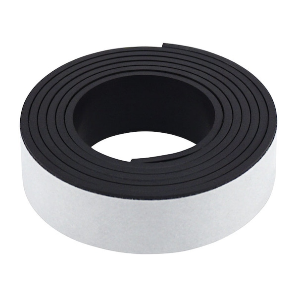 Flexible magnetic tape rolls are great for making small & lightweight projects magnetic. Adhesive on one side and magnetism on the other. Cuts easily with scissors to any desired length. Great for use at home, school, office and shop. * * More About Flexible Magnets: Flexible materials offer a uniquely desirable combination of properties at lower cost than other magnet materials. The flexibility and machinability of these materials allow manufacturing techniques not possible with rigid or brittle materials. * * Flexible magnet material is used in a variety of applications from labeling, holding, door gaskets, and signs, to micromotors and CRT focusing. Practical uses include crafts, toys, games, magnetic signs, displays, production control (or visual aid) systems, warehouse shelf labeling, movable markers, advertising premiums, magnetic business cards, architectural planning layouts and more.
