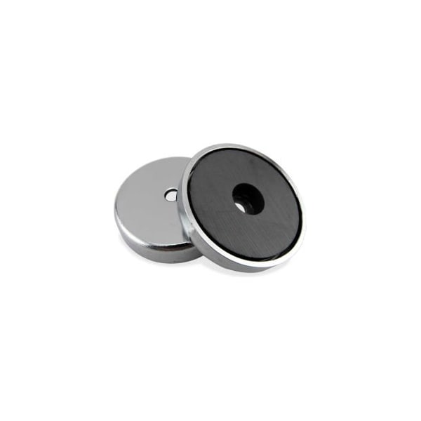MASTER MAGNETICS CERAMIC ROUND BASE MAGNET RB50CBX - 25 LBS. PULL ROUND BASE MAGNETS ARE POWERFUL, LOW-PROFILE MAGNETS WITH AN ATTACHMENT HOLE IN THE CENTER. ATTACH A HOOK OR KNOB TO POSITION OR HOLD INSPECTION EQUIPMENT, INDICATOR GAUGES, LAMPS, SIGNS, ANTENNAS AND MORE. MAGNETIC ON ONE SIDE. ALL ROUND BASE MAGNETS ARE NICKEL OR NICKEL/CHROME PLATED FOR DURABILITY.