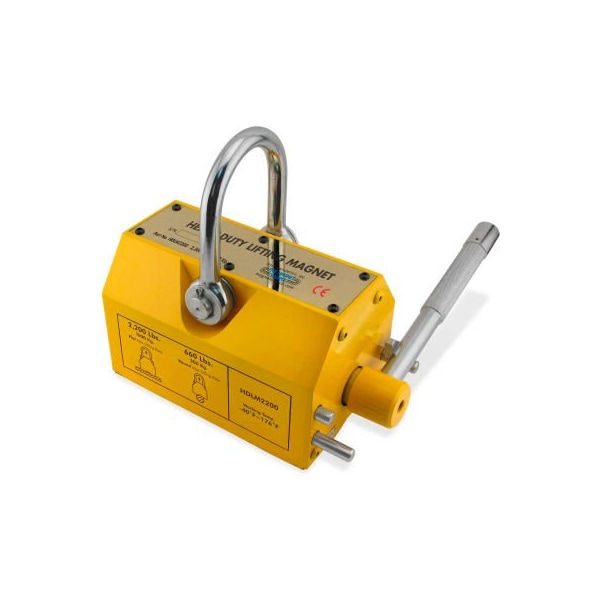 Master magnetics heavy duty neodymium lifting magnet hdnlm2200 - 2200 lbs. Pull you don't have to be big and bulky to handle heavy loads. Our heavy duty lifting magnets utilize neodymium, the strongest magnetic material in the world. With four different models to fit your specific application, their efficient compact strength will amaze you. ideal for handling steel plate, forgings, die castings and similar items in machine shops, warehouses and industrial processing plants lifts either flat or round ferrous metal items eliminates the need for slings or clamping devices no electricity required for operation of magnet max. Rated round capacity: 1100 lbs