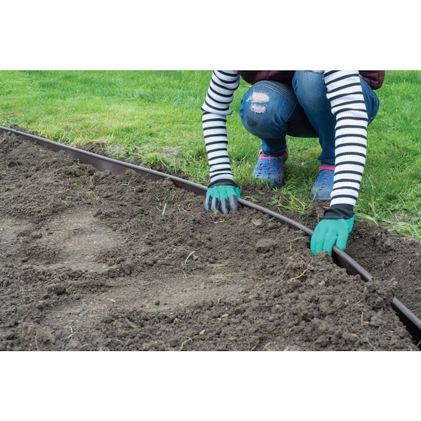 Create a beautiful clean and neat border around your flower beds gardens and walkways with Master Mark Original coiled lawn edging. At 3.5 inches tall this lawn edging offers a weed and grass barrier to protect your garden beds and landscaping from unwanted grass and weeds reducing the maintenance needed to maintain a beautiful yard. Made of HDPE plastic it offers flexibility and durability to form curves or straight designs. A defined top bead makes it easy to outline your garden lawn and landscaping borders.