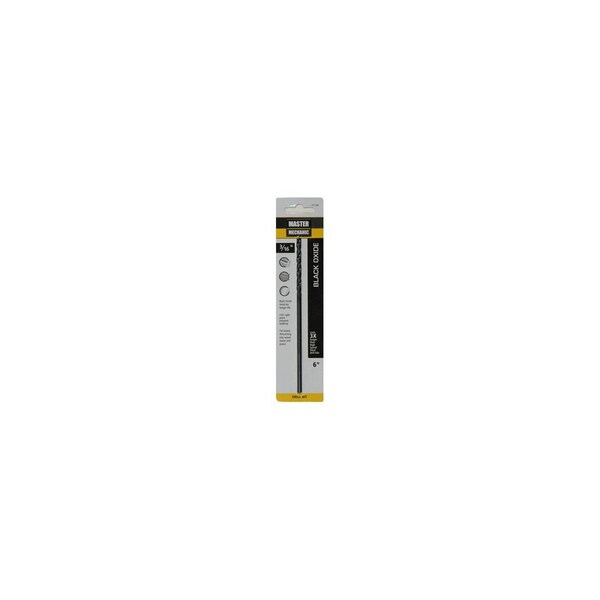 Master Mechanic, 3/16in x 6in, Extra Length, High Speed Steel, Black Oxide Drill Bit, 135 Point Angle With 4 Cutting Edges Which Eliminate Walking & Provide Fast Penetration, Black Oxide Tempering Treatment Reduces Frictional Resistance & Improves Chip Flow, Recommended For Wood, Plastic, Wallboard, Plywood & Soft Metals, Aluminum, Brass, & Bronze, For Occasional Use In Stainless Steel & Other Hard Metals, Carded.