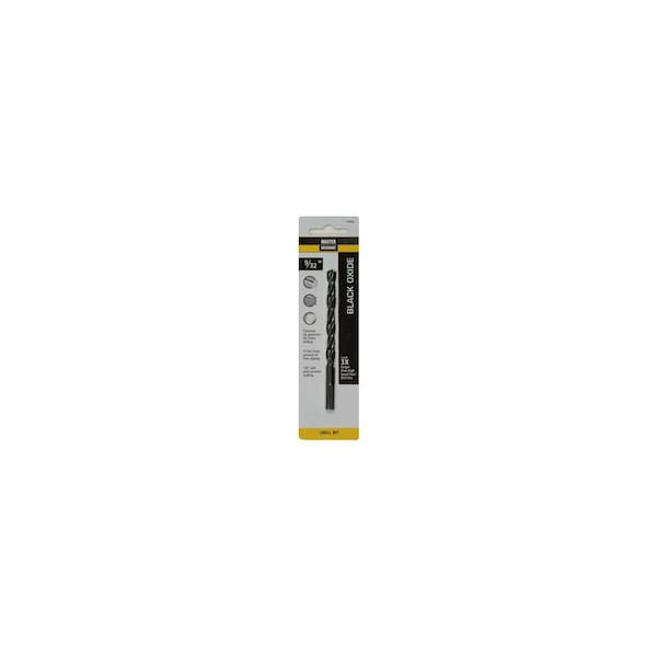 Master Mechanic, 9/32in x 4-1/4in, High Speed Steel, Black Oxide Drill Bit, 135 Split Point, Jobber Length, Straight Shank, 135 Point Angle With 4 Cutting Edges Which Eliminate Walking & Provide Fast Penetration, Black Oxide Tempering Treatment Reduces Frictional Resistance & Improves Chip Flow, Recommended For Wood, Plastic, Wallboard, Plywood & Soft Metals, Aluminum, Brass & Bronze, For Occasional Use In Stainless Steel & Other Hard Metals, Carded.