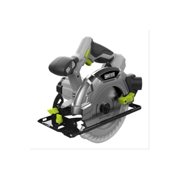 Master Mechanic 20V lithiumion cordless circular saw, 612 blade, 4000 RPM, features trigger switch with brake, spindle lock for blade change, 045 degree bevel, cast aluminum upper guard, poly carbonate lower guard and steel base Maximum cutting depth 45 degree 112'', 90 degree 2116'',ergonomic design, over molded soft grip, bore size 58'' Includes 24 tooth tungsten carbide blade, 1 pc rip guide TV 103728 MM 20V battery 15A, TV 103729 MM 20V battery 3A sold separately Bare tool only