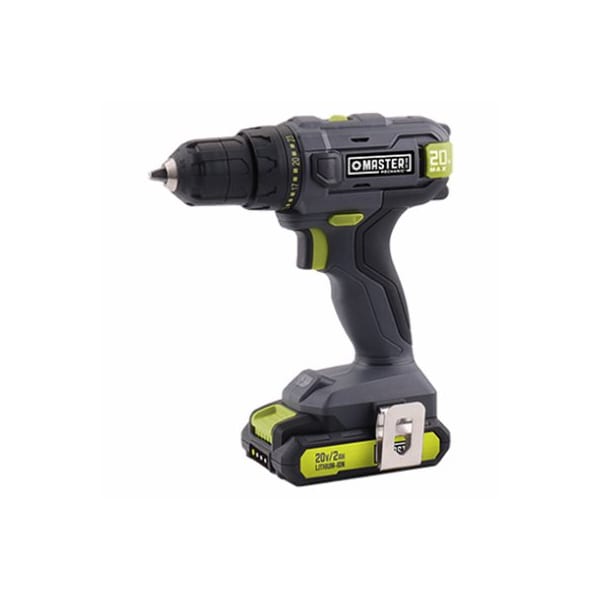 Master Mechanic 20V 38 lithiumion compact cordless drill kit Compact gear box, variable speed trigger switch with brake, 0400, 01500 RPM, 310 INLBS torque, 231 torque settings On board trigger activated LED work light, over molded soft grip handle, switch with additional soft grip cover Includes 20Ah battery with charge indicator and 1 hour quick charger For replacement battery use TV211881 and charger TV 211880 Fully compatible with 20162018 series tools Compatible TV 103728 MM 20V battery 15A, TV 103729 MM 20V battery 3A sold separately