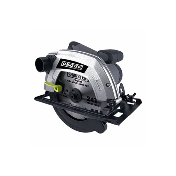 Master Mechanic circular saw, 12A, 5000 RPM no load speed, 714 blade, 24T carbide blade with 58 arbor diameter Cutting capacity at 45 degree 11116, 90 degree 212 Without laser, steel base Includes 1pc 24T saw blade, 1pc guide rule and 1 hex key