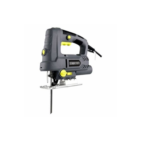 Master Mechanic jig saw, 65A, 03000 RPM, 1316 stroke length, wood 31516, metal 716, 045 degree bevel, toolless blade change, steel base, accepts T shank blades Blower function and dust extraction, lock on switch, 1 piece blade for wood