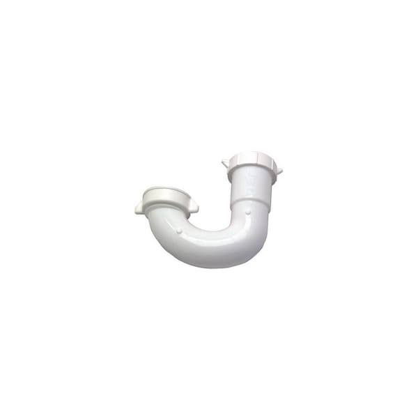 Master Plumber, White, Plastic, Lavatory Drain J Bend, 1-1/4in O.D. Tube Slip Joint, Includes Nuts & Washers, Carded.