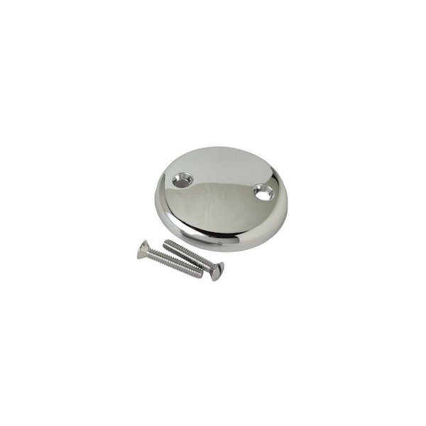 Master Plumber, Chrome, Bath Tub Drain Overflow Face Plate, 2 Hole Round Plate, Includes Screws, Universal Fit, Carded.