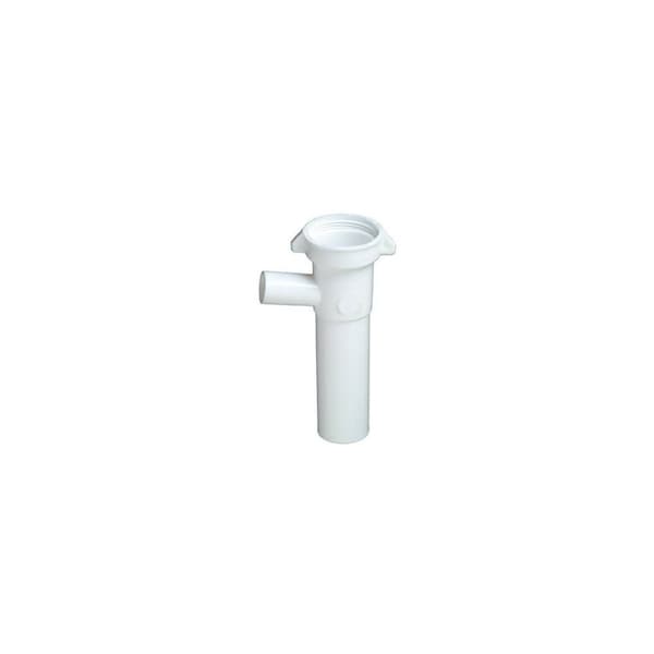 Master Plumber, White, Plastic, Dishwasher Branch Tailpiece, 1-1/2in O.D. Tube Direct Connect x 6in With 7/8in O.D. Branch, Includes Captive Nut & Washer, Bagged.