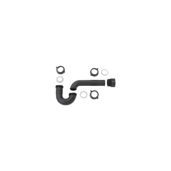 Master Plumber, Black, Plastic, Kitchen Wall Drain P Trap, With Solvent Weld Pipe Adaptor, 1-1/2in Tube Slip Joint, Includes Nuts & Washers, Bagged.