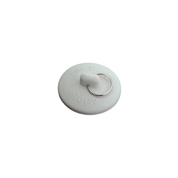 Sink Stopper with Metal Ring, White, Rubber, 1 to 1-In. Drains