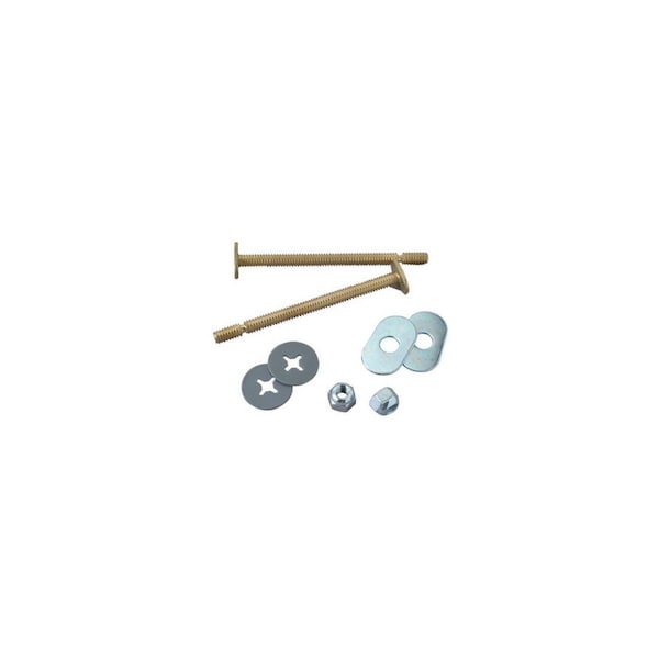 Master Plumber, 2 Pack, 1/4in O.D. x 3-1/2in, Snap Off Toilet Flange Bolt, Includes Brass Bolts, Metal Cap Nuts, Metal Oval Washers & Metal Round Washers, Carded.