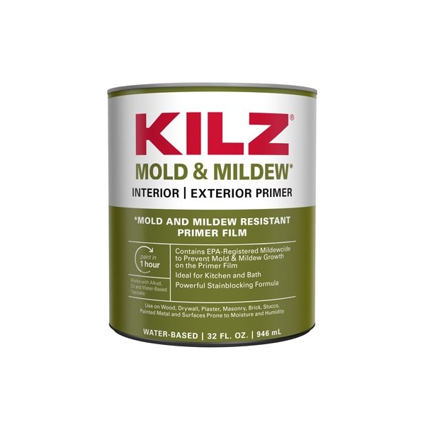 Kilz Mold & Mildew Quart Interior/Exterior Water Based Primer Sealer & Stain Blocker Specially Designed For Residential Surfaces In High Humidity Moisture & Temperature Environments Like Kitchens & Bathrooms Excellent Adhesion EPA Registered Active Ingredient Creates Mold & Mildew-Resistant Film Fast Drying Low Odor Low VOC Formula Easy To Clean With Soap & Water
