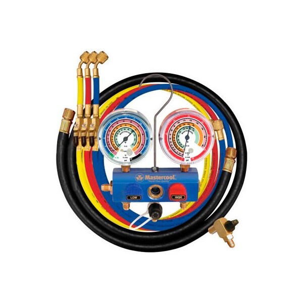 Mastercool 3 Way 3 1/8" Gauges, 60" Hoses 3-1/4" R, B, Y & 1-3/8" Black (Discontinued)