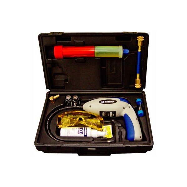 Mastercool 56300 complete electronic / uv leak detector kit this kit offers the "inspector" along with our uv dye injection system. Our cartridge type dye injector is fast and easy to use. Just twist the handle to inject the appropriate amount of dye. The 56300 kit is the ultimate solution for all your a/c leak detection needs. features: 56300 "inspector" electronic leak detector uv dye injector w/25 application dye cartridge dye injector connection hose w/r12 adapter dye cleaner & uv safety glasses
