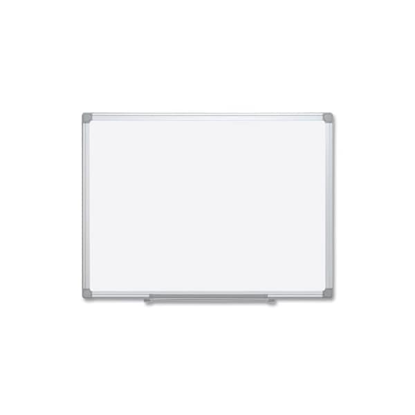 Basic whiteboard combines durability, superior visibility, exceptionally smooth writing/erasing and scratch resistance, making it perfect for moderate, everyday use. Sturdy aluminum frame features the four-corner system for easy wall mounting, and it may be oriented vertically or horizontally. Handy snap-on pen tray and all mounting hardware are included. MelamineReversible -- simply flip the board to extend use. Board Type: Dry Erase; Board Width: 72in; Board Height: 48in; Surface Material: Melamine.