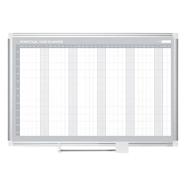 Calendar Planning Board, Steel, 38 in, 50 in, Aluminum Frame, White/Gray, Matte