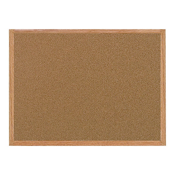 Bulletin Board, Board Material Cork, Board Color Natural, Board Frame Material Medium Density Fiberboard, Width 59 in, Height 35 13/32 in, Frame Color Oak, Board Style Push-Pin, Mounting/Mobility Type Wall Mounted