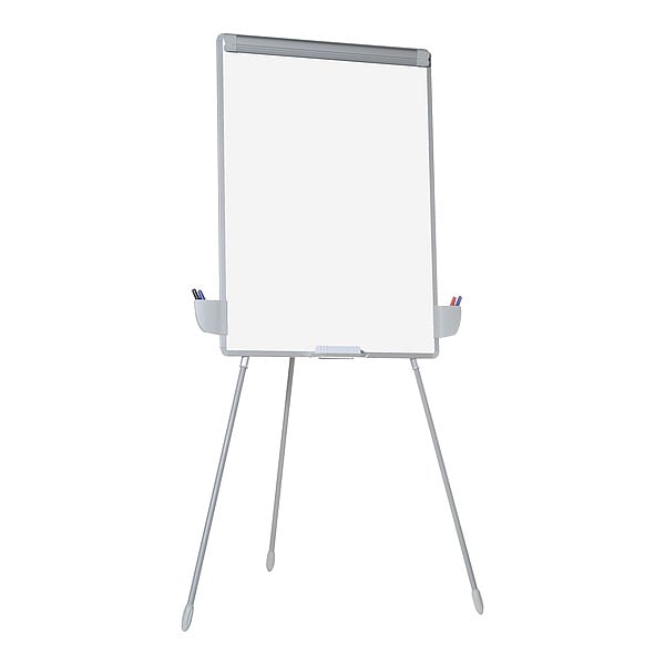 Tripod easels make set-up and take-down a snap. Easy to store. Non magnetic melamine surface resists staining and is suitable for moderate use. Handy removable pen and accessory cups can be positioned at any height, and the pen tray can be positioned to the right or left for left-handlers. Lightweight and portable - it folds for storage, and can be used on table-top or floor.