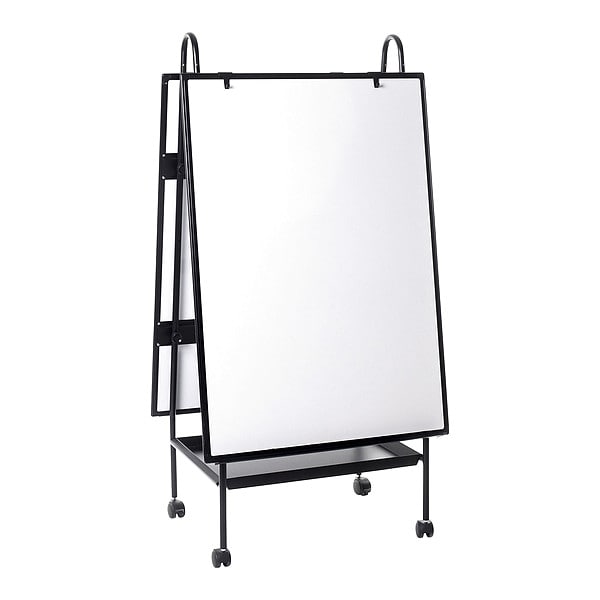Dry Erase Board, Board Properties Magnetic, Mounting/Mobility Type Mobile/Casters, Board Color White, Dry Erase Height 59 21/32 in, Dry Erase Width 29 23/32 in, Depth 4 1/8 in, Dry Erase Surface Finish Matte, Adjustable Height Range 4-29/32 in to 27-39/64 in, Frame Color Black, Board Frame Material Aluminum, Frame Material Aluminum, Dry Erase Surface Type Steel, Corner Shape Square, Includes 10 Year Surface Warranty, Tray
