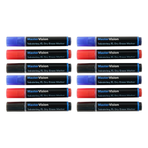 ,Inkstring Markers, Box Of 12, Assorted Black Red Blue