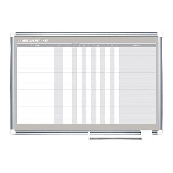 In/Out Board, Board Properties Magnetic, Mounting/Mobility Type Wall Mounted, Board Color White/Gray, Dry Erase Height 24 in, Dry Erase Width 36 in, Frame Color Gray, Board Frame Material Aluminum, Frame Material Aluminum, Dry Erase Surface Type Steel, Corner Shape Square, Includes 10 Year Surface Warranty, Tray