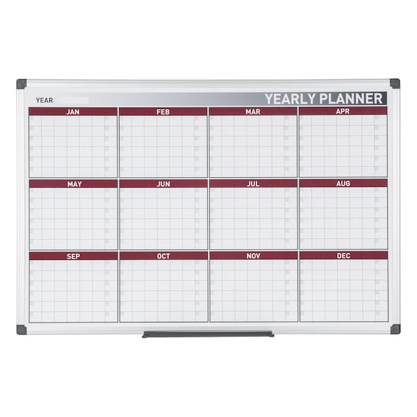 MasterVision,Magnetic 12-Month Dry-Erase Planner, Red and Silver Design, 2x3'