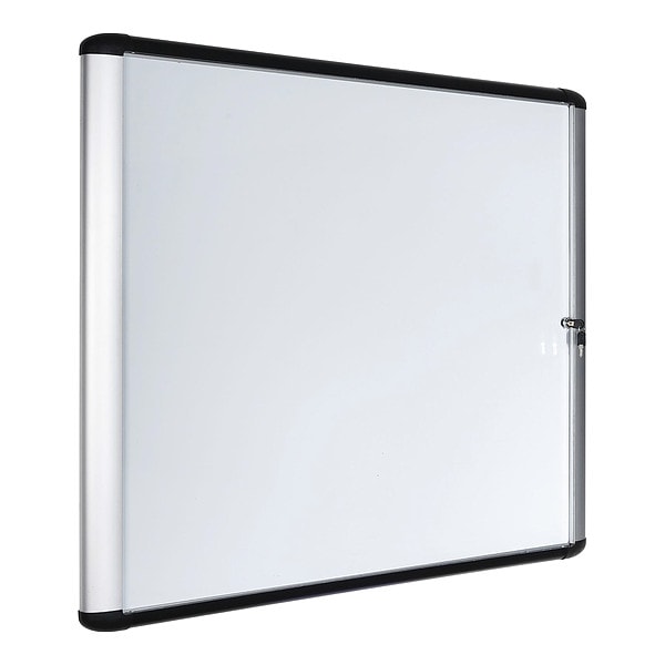 Enclosed Dry Erase Board, Dry Erase, Magnetic Letter, Board Material Porcelain, Width 28 in, Height 38 45/64 in, Board Frame Material Aluminum, Frame Color Black, Board Color White, Number of Doors 1, Door Type Swing, Includes (2) Keys, Mounting/Mobility Type Wall Mounted, Door Material Acrylic, Indoor Enclosed Bulletin Board