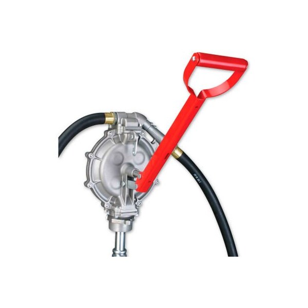 groz 44195 dpp-1 double diaphragm fuel transfer pump. High volume double acting diaphragm hand pump used for compressed air/power pumps are not easily available such as farms, ranches, construction sites boats etc. This pump is complete with 2 inch bung, telescopic suction tube with non-return valve along with a 8' anti-static discharge hose assembly nozzle. Heavy duty steel handle is equipped with a security locking latch to prevent fuel theft. Pump inlet is fitted with easy to clean wire mesh screen. Pump is constructed of die cast aluminum. This will fit 15 to 55 gallon drums. Discharge up to 28 oz./stroke. Recommended with: gasoline, diesel fuel, kerosene, fuel oil, motor oil. Hi volume discharge 1 gallon per 5 strokes (800 ml/stroke).