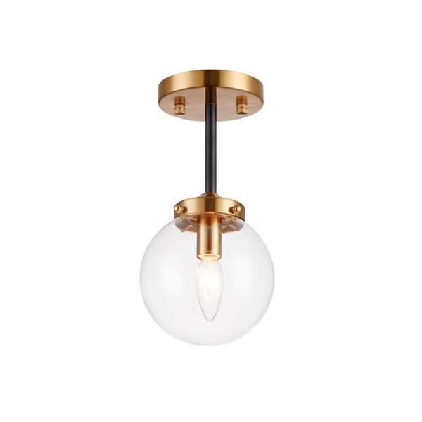 There’s no room for a no-win scenario in interior décor with the Maru Semi-Flushmount by Matteo Lighting. Smooth and mid-century in style, it starts with a smooth disc canopy of stainless steel that drops a short downrod to a single cylindrical socket for a candelabra style bulb. The lamping is then surrounded by a spherical shade of clear glass held in place by a metal collar that flares out above the socket, mellowing direct brightness and softening the fixture’s otherwise simple lines. Introduced in 2018, Matteo Lighting brings a fresh perspective to modern residential light fixtures. With collections spanning minimalist, contemporary and mid-century modern aesthetics, Matteo Lighting is poised to be a favorite of the design industry. Driven by a passion for energy-efficient, functional and attention-grabbing home lighting, Matteo Lighting represents all there is to love about modern lighting design. Material: Stainless SteelShade Material: Glass One 60 Watt (650 Lumens) 120 Volt E12 Candelabra Base Incandescent Lamp(s) (Not Included) Canopy: Diameter 4.75" Fixture: Height 9.75", Diameter 5.88", Weight 3Lbs