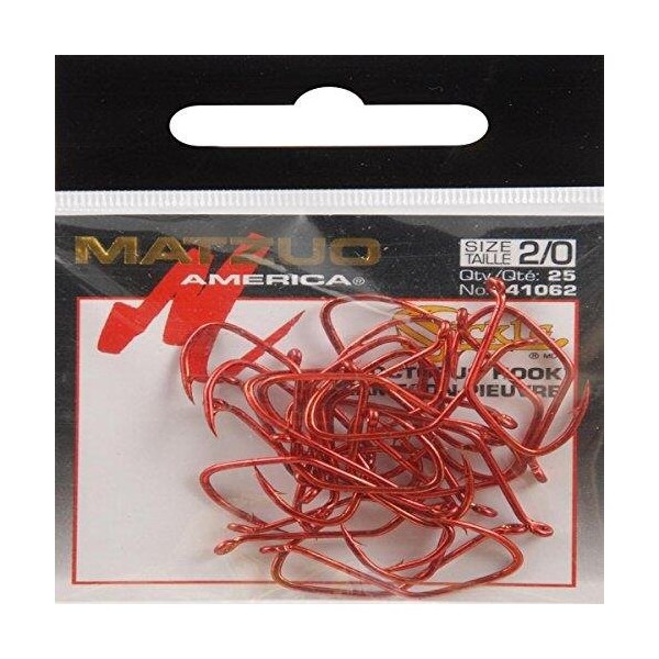 Octopus sickle HK RC 20 25pk this versatile hook is used for salmon, Steelhead, or walleye applications Designed with an up eye offset needle point make this a great hook in smaller sizes for fresh water and larger sizes for saltwater Hook of choice for rigging both fresh and saltwater rigs standard single hooks Matzo smaller size hooks walleye, trout, pan fish Larger size hooks catfish, Northern Pike, Muskie, salmon, Steelhead and all saltwater applications The sickle Octopus can be used with live bait, cut bait, and soft plastic Hook size 2 quantity 25 Matzuo 14106220 Octopus Sickle Hook Red Chrome 20 25pk