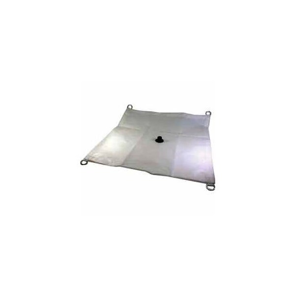 5' x 5' fire retardant vinyl nylon drain tarp - vn-0505 these heavy duty drain tarps or roof leak diverters are designed to protect personnel and equipment from overhead leaks. Made out of heavy duty flame retardant 13 oz. Translucent vinyl. The drain spout connects to 3/4 hose (not included) which serves as the downspout. Custom sizes available upon request. Pre-finished size tarpaulin may actually finish 3-5% less in size. Need to specify on the po if a specific finished sizes is required.