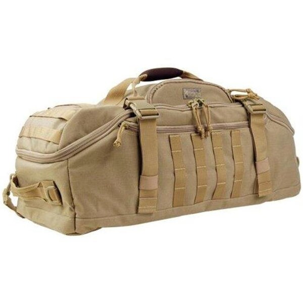 The DOPPELDUFFEL Adventure Bag is a unique large travel bag that may be carried by hand, shoulder strap in 2 orientations, or with hide-away integral backpack straps. Two (2) internal padded dividers can split main compartment into smaller sections.Product Features:Main compartment: 26” x 13” x 9” with two padded dividersFrontal/top compartment: 10” x 7” x 2”Internal pockets: 8” x 6” x 2” (two)Side slip pockets: 22” x 6” (two)Approximate Capacity: 3200 cu. in.PALS attachment webbing: Top, bottom and both sidesShoulder strap: Includes 2” shoulder strap, adjustable, with 2" shoulder padBackpack straps: Contoured built-in with sternum strapHydration: Can hold up to 100 oz / 3L reservoir (sold separately)Product Materials:1000-Denier water and abrasion resistant light-weight ballistic nylon fabricNon Stick Surface fabric protector for grime resistance and easy maintenanceYKK high strength zippers and zipper tracksUTX-Duraflex nylon buckles for low sound closuresTriple polyurethane coated for water resistanceHigh tensile strength nylon webbingHigh tensile strength composite nylon thread (stronger than ordinary industry standard nylon thread)#AS-100 high grade closed-cell foam padding material for superior shock protection Internal seams taped and finishedParacord zipper pullsStress points double stitched, Bartacked or "Box-and-X" stitched for added strength