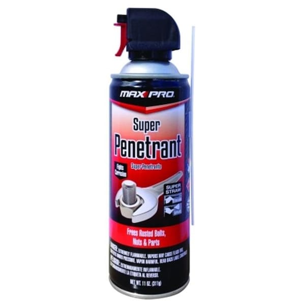 Max ProSuper Penetrant is a fast acting deep-penetrating lubricant that reduces friction, fights corrosion and displaces moisture.Max Pro Super Penetrant removes dirt and grease while leaving a coating that protects against subsequent corrosion. Cuts through rust and corrosion to free locks, bolts and nuts.