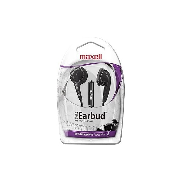 - • Experience high-quality sound from Maxell EB-95 Earbuds With Microphone. These lightweight earbuds with wires can connect to a variety of sources including portable stereos, computers and CD players.
